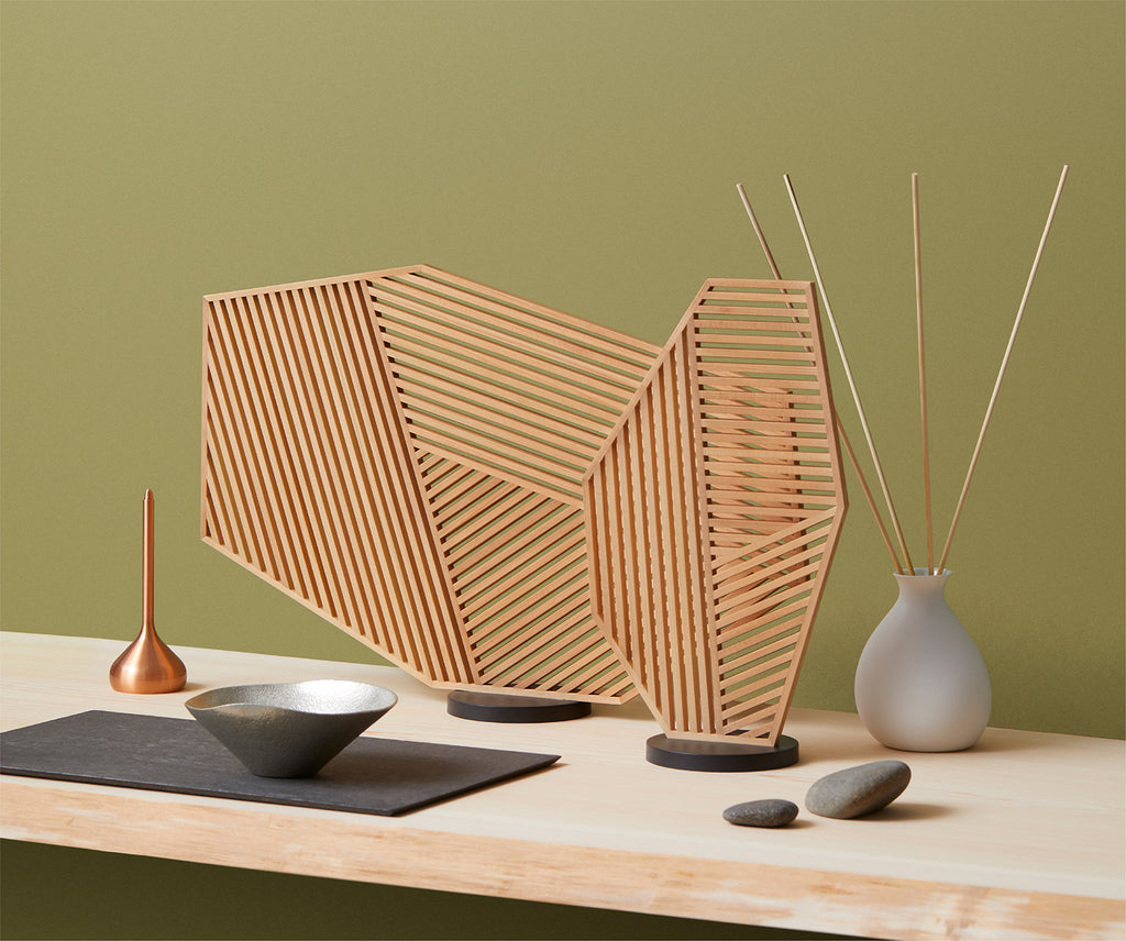 クリアSサイズ / クリアL-Hサイズの組み合わせ。大きめのサイズなので、室内のオブジェとしての存在感を持たせることができ、また機能的にもパソコン作業やカウンター机の間仕切りなど、プライベート、パブリック問わず様々な使い方を誘発してくれます。木の風合いが感じられるこの組み合わせは、より自然と調和するナチュラルなテイストをもたらしてくれます。